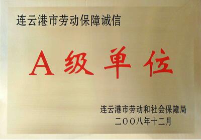 為加快推進(jìn)我市用人單位勞動(dòng)保障誠(chéng)信建設(shè),使更多的用人單位建立依法用工、自我約束、自我示范、誠(chéng)實(shí)守信的勞動(dòng)保障管理模式,市勞動(dòng)和社會(huì)保障局根據(jù)《勞動(dòng)保障監(jiān)察條例》要求,對(duì)全市用人單位進(jìn)行綜合考評(píng)。包括我公司在內(nèi)的79家用人單位被評(píng)為2008年度勞動(dòng)保障誠(chéng)信A級(jí)單位。