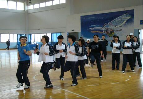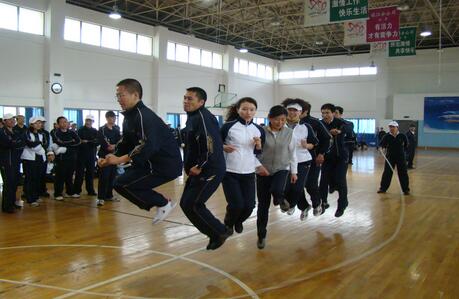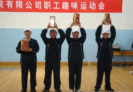 終于輪到最讓人期待的集體比賽項目了;十人一組的集體跳繩,是所有項目中最能體現(xiàn)一個團(tuán)隊協(xié)作精神的項目。在規(guī)定的3分鐘內(nèi),繞繩的兩人和跳繩的八人必須步伐合拍,節(jié)奏一致。第一個上場比賽的是第一代表隊(第一工廠),賽前其他的參賽隊員多多少少都會在場邊進(jìn)行熱身練習(xí),只有這個第一代表隊列隊旁觀,仿佛吃了定心丸,個個胸有成竹的樣子。按照比賽規(guī)則,正式比賽前允許有兩次試跳,第一代表隊的選手開始試跳了;第一次,魏引娟的鞋子差點被“引”了出去…第二次,好像又是田蓉踩了后面胡光榮的腳…兩次試跳,一工廠的成績并不理想,場邊已有人竊竊私語“牛什么,誰讓他們剛才不練習(xí),估計前三都進(jìn)不去!”,但是場上所有一工廠隊員的眼神依然十分淡定。隨著裁判員的倒數(shù)三二一,比賽開始了!“1,2,3,4…..119、120、121”停!天哪,沒想到第一個上場的第一代表隊居然在三分鐘內(nèi)整整跳了121下!這個成績也最終讓他們站上了集體跳繩比賽冠軍的領(lǐng)獎臺,并比第二名整整領(lǐng)先了31個!賽后心有不甘的其他代表隊成員向領(lǐng)隊盧正軍請教,為何他們不用練習(xí)就能如此完美發(fā)揮?答曰“誰說我們不練?!我們所有參賽隊員在比賽前十天連吃午飯都是手拉手蹦著去的……”