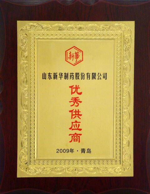 7月18日,在山東青島召開的新華制藥制劑供應商大會上,我公司被評為2009年度山東新華制藥股份有限公司優秀供應商并頒發證書。