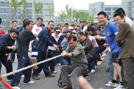 最吸引觀眾眼球的要數那羽毛球單打、雙打的決賽和籃球對抗賽了,特別是“公司聯隊”與“銷售代表隊”的籃球對抗賽,其比賽激烈程度一點也不亞于專業的賽事,兩支隊伍的出色表現也為本屆運動會增添了一抹亮色。在上半場結束時“銷售代表隊”以6:11的比分落后于“公司聯隊”,比賽勝負似乎已見分曉,但下半場開始后,銷售代表隊及時調整戰略和部署,充分利用隊員身高優勢積極拼搶籃板,抓住對方頻頻失誤的有利時機,將比分追至只有一分之差。最后時刻,銷售代表隊的王海濱以一個漂亮的2分球險定勝局,贏得了本場比賽。下午舉行的拔河比賽將本次趣味運動會的氣氛推向了高潮,只見賽場上人頭攢動,氣氛異常熱烈,運動員們個個摩拳擦掌,躍躍欲試,拉拉隊員搖旗吶喊,加油助威聲響徹整個賽場……