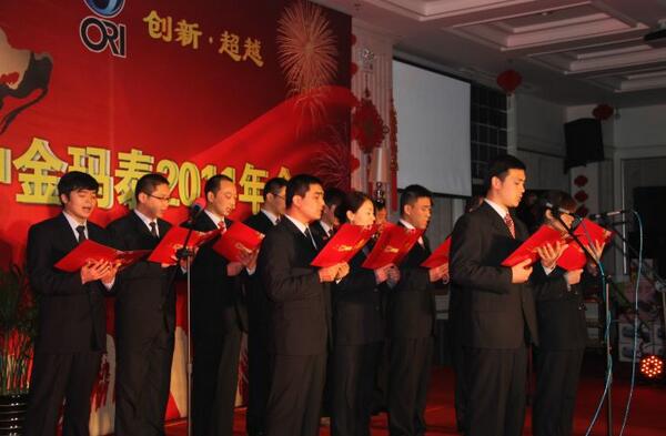 玉兔歡歌辭舊歲,祥龍起舞迎新年。2月4日,連云港世紀緣國際酒店七樓會議廳內(nèi)燈光璀璨,氣氛熱烈,洋溢著節(jié)日的喜慶和歡樂。以“創(chuàng)新、超越”為主題的中金瑪泰2011年年會正在這里隆重召開。來自公司各條戰(zhàn)線的三百余名員工歡聚一堂,共慶新春佳節(jié)。