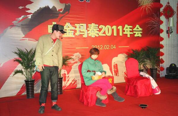 年會的文藝表演部分在一工廠的一首《中金瑪泰 我為你自豪》的詩歌朗誦中拉開了帷幕,那抑揚頓挫、慷慨激昂的詩文朗誦熱情謳歌了企業(yè)二十五年來走過的風雨歷程,也集中展現(xiàn)了一工廠員工積極向上、蓬勃熱情的精神風貌。來自技術質(zhì)量部的全體女員工手捧溫暖的燭光,以一曲《感恩的心》讓整個年會的現(xiàn)場充滿了溫馨與感人的氛圍。從去年的《賣拐》到今年的《賣貓》,二工廠梅詠和程煒詼諧風趣而又默契十足的表演讓場下的觀眾爆笑連連。.釣井副總監(jiān)的一曲《曹操》唱翻了全場,那充滿異國風情的歌聲贏得了觀眾的陣陣叫好聲;財務部、總務部等多個部門共同合作的小品《非雷勿擾》更是將整場晚會的氣氛推向了高潮,那幽默的臺詞、豐富多彩的肢體語言、夸張滑稽的反串表演讓臺下觀眾們捧腹大笑…….整臺晚會內(nèi)容豐富,精彩紛呈,為觀眾呈現(xiàn)了一場視覺的盛宴。晚會最后還評選出優(yōu)秀主題獎和優(yōu)秀表演獎,公司領導上臺為本次晚會優(yōu)秀節(jié)目頒獎。