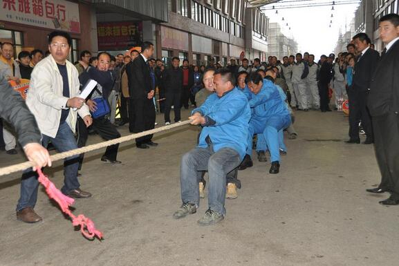 4月20日下午,由連云港市開發區管委會主辦,華東城承辦的“華東城杯開發區職工拔河比賽”在華東城海寧皮革城區域隆重舉行,來自全區各機關、企業單位的33家代表隊,近500名職工參加了本次比賽。我公司也精心組織兩支代表隊參加了本次拔河比賽。