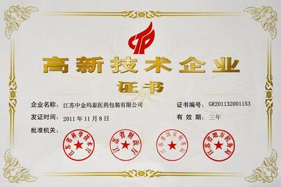 高新技術(shù)企業(yè)的通過,標(biāo)志著公司的科技創(chuàng)新能力再上一個(gè)新的臺階,對公司今后的生產(chǎn)、經(jīng)營將起到很大的推動作用。同時(shí)也增強(qiáng)了中金瑪泰的市場競爭力,增加企業(yè)的經(jīng)濟(jì)效益,也充分肯定了中金瑪泰作為醫(yī)藥包裝領(lǐng)先企業(yè)所做出的創(chuàng)新價(jià)值。中金瑪泰一直以來堅(jiān)持走科技創(chuàng)新道路,先后有4個(gè)項(xiàng)目獲得省科技進(jìn)步獎,“PTP彩箔”、“紙/鋁/塑復(fù)合膜”、“聚合物鋰離子電池芯內(nèi)包裝成型材料”、“非PVC大輸液膜 ”等多個(gè)產(chǎn)品成為國家級重點(diǎn)新產(chǎn)品。近三年來,企業(yè)獲得國家發(fā)明專利1項(xiàng)、實(shí)用新型6項(xiàng)。“中金”品牌被評為國家優(yōu)秀包裝品牌,“水性PTP鋁箔”項(xiàng)目獲得國家優(yōu)秀創(chuàng)新獎。2010年高新技術(shù)產(chǎn)品收入達(dá)到2.4億元,占銷售收入77%。科技創(chuàng)新為企業(yè)的發(fā)展做出了巨大的貢獻(xiàn)。