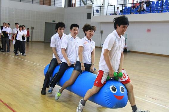 隨著比賽項目的逐一開展,整個運動場館內(nèi)熱鬧非凡,成了一片歡樂的海洋。首場的消防器材使用接力賽將消防知識與運動項目有趣結(jié)合,寓教于樂兩相宜;集體跳繩考驗的則是團隊的配合與默契,選手們穿梭在不斷揮舞的長繩間,速度與效率的完美結(jié)合,令人嘆為觀止;毛毛蟲競速是今年新增趣味比賽項目的一個看點,比賽開始,兩隊選手各騎一只造型憨態(tài)可掬的充氣“毛毛蟲”,在保證整體步伐整齊有序的同時盡量快速移動。“毛毛蟲”搖頭擺尾、不斷“蠕動”的可愛模樣,以及前進途中各隊隊員們奮力沖向終點時的狀況不斷,引得場下觀眾笑聲連連......一個個充滿趣味的項目把緊張激烈的比賽變成了充滿笑聲、重在參與的“游戲”。在這個強調(diào)團隊協(xié)作,注重技巧與配合的賽場上,少了一份競爭,多了一份樂趣,大家在活動的參與中一起體驗運動的快樂。此次趣味運動會公司高層領導也到賽場觀看比賽,并與員工們一同參加了一些項目的比賽。