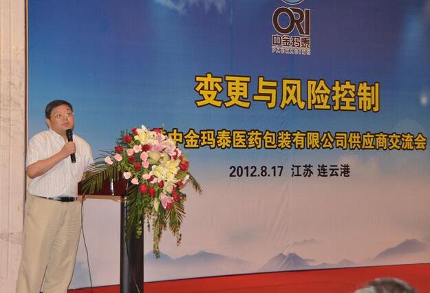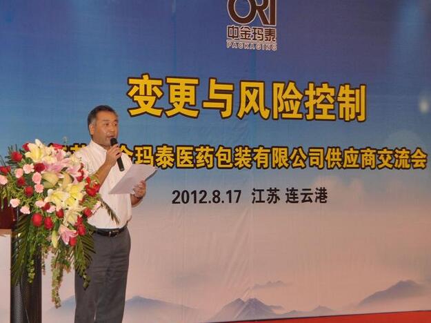 在GMP管理中,任何變更對(duì)產(chǎn)品的質(zhì)量、安全以及有效性都可能產(chǎn)生影響,而進(jìn)行變更控制是質(zhì)量保證功能的重要部分,旨在確保產(chǎn)品的生產(chǎn)保持一致,產(chǎn)品的質(zhì)量與其目的相適應(yīng)。8月17日下午,以“變更與風(fēng)險(xiǎn)控制”為主題的2012年中金瑪泰供應(yīng)商研討會(huì)在連云港市世紀(jì)緣國(guó)際酒店內(nèi)隆重舉行,來自全國(guó)各地的30余家主要供應(yīng)商的70多位代表參加了本次會(huì)議。中金瑪泰高層領(lǐng)導(dǎo)以及公司相關(guān)部門負(fù)責(zé)人出席了會(huì)議。禮來蘇州制藥有限公司質(zhì)量總監(jiān)孫國(guó)明先生也應(yīng)邀出席,并做了《變更控制與質(zhì)量風(fēng)險(xiǎn)管理》的專題講座。