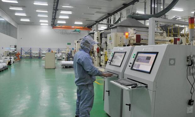完善的檢測手段既是產品技術創新的前提,也是高品質產品的有力保障。為進一步穩定和提高產品品質,提升企業競爭力,不斷滿足客戶日益提高的質量要求和標準。近日,中金瑪泰又投資100余萬引進了一套產品質量在線檢測裝置,該裝置主要用于SP共擠復合工序產品生產時的質量在線檢測。