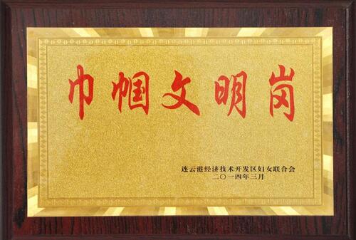 近日,連云港經濟技術開發區婦聯召開表彰會議,對2013年以來,全區各行各業中涌現出的愛崗敬業,無私奉獻的優秀婦女群體進行了表彰。我公司財務部榮獲“巾幗文明崗”榮譽稱號。