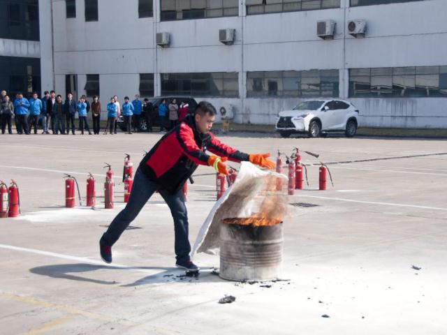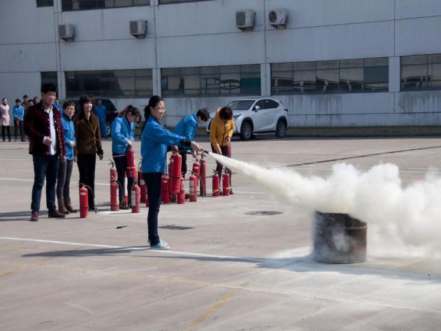 為了讓消防知識深入人心,培訓(xùn)課程結(jié)束后,公司安全科長楊正濤在室外場地就滅火器材及防護裝備的使用進行了現(xiàn)場的示范與演練,同時對初起火災(zāi)撲救方法以及火災(zāi)發(fā)生后如何報火警、如何安全疏散和自救逃生等安全常識進行了詳細的解說,并在現(xiàn)場讓公司員工親身體驗了一次滅火實戰(zhàn)演練過程。在隨后的各工廠應(yīng)急演練疏散過程中,當(dāng)消防警報突然響起,各區(qū)域安全負責(zé)人立即組織本區(qū)域人員井然有序地按照規(guī)定疏散路線,迅速撤離現(xiàn)場,到達指定地點,出色的完成了疏散逃生演練。