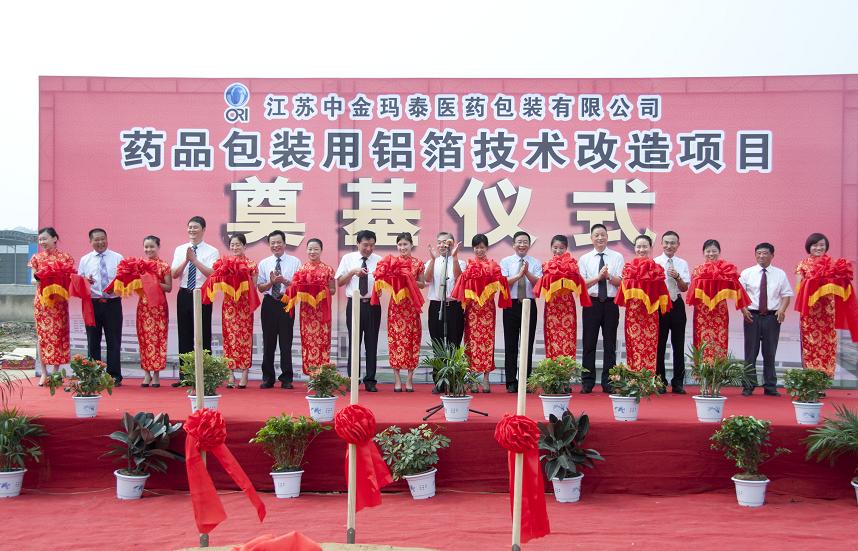 2015年7月24日,江蘇中金瑪泰醫藥包裝有限公司藥用包裝鋁箔技改項目奠基儀式在新廠區舉行,這標志著新工廠技改項目的建設正式拉開了帷幕。