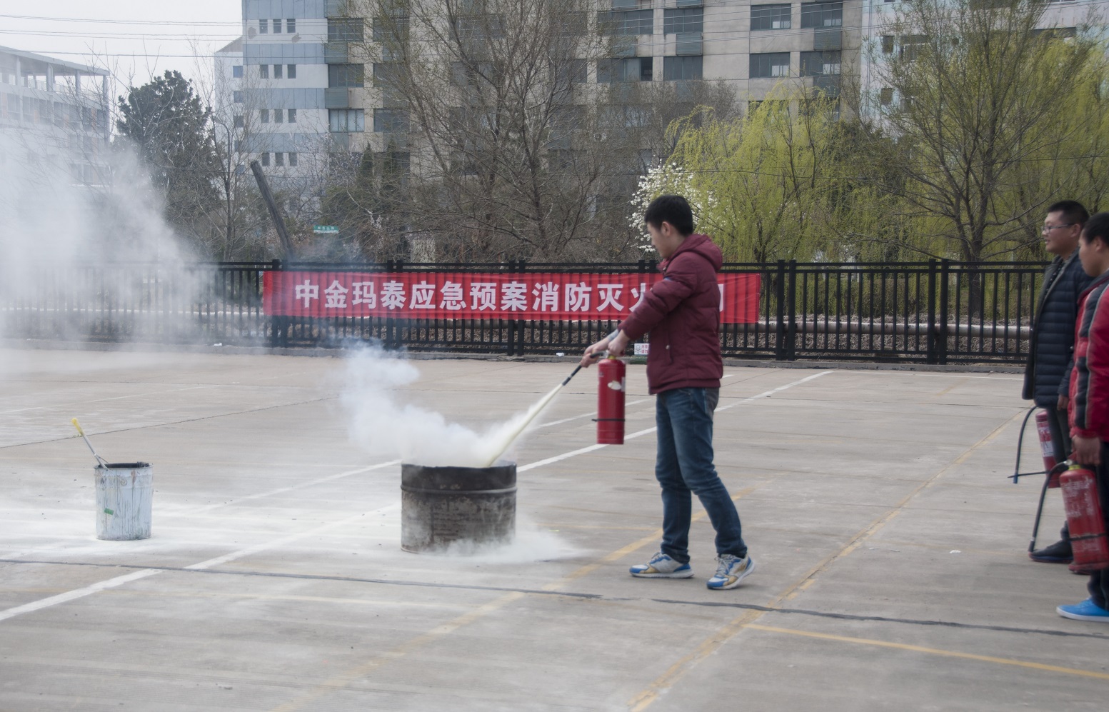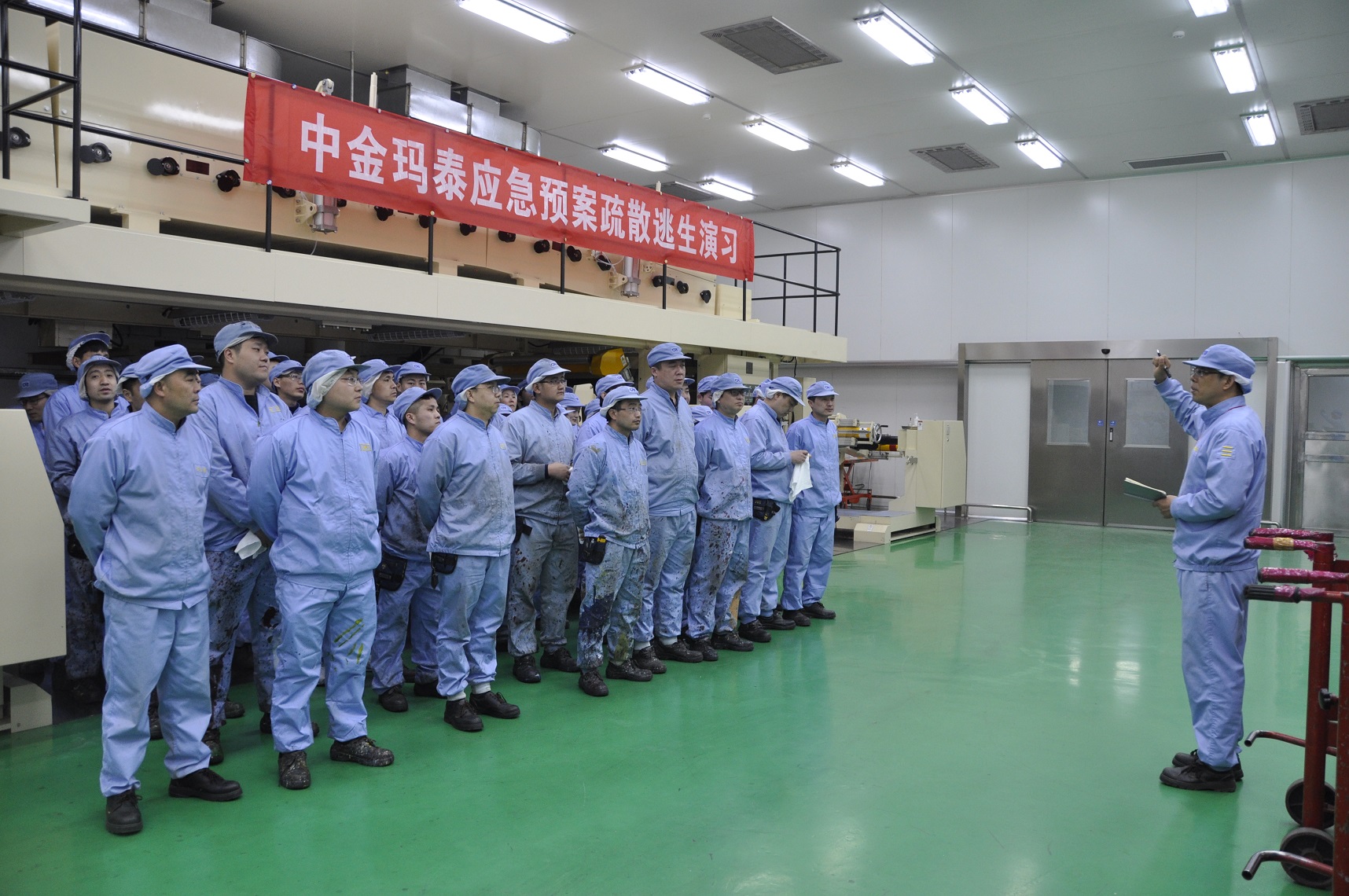 培訓課程結束后,公司安全科長楊正濤在演練場地就滅火器材及防護裝備的使用進行了現場的示范與講解,對初起火災撲救方法以及火災發生后如何報火警、如何安全疏散和自救逃生等安全常識進行了詳細的解說,參訓人員對手持式滅火器進行了實際操作演練。在隨后的各工廠應急演練疏散過程中,當消防警報突然響起,各區域安全負責人立即組織本區域人員井然有序地按照規定疏散路線,迅速撤離現場,到達指定地點集合,出色的完成了疏散逃生演練。