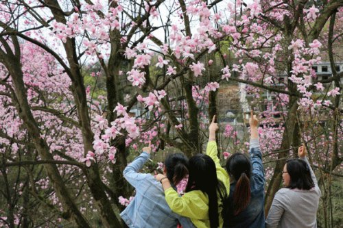 旅程的第二天,便來到緊挨著九皇山的藥王谷,乘車沿著蜿蜒的山路而上,一進入景區映入眼簾的是一片繽紛燦爛、深淺不一的辛夷花海,好似走入了人間仙境、世外桃源,辛夷花不僅絢麗奪目,還有很高的藥用價值,辛散溫通、善通鼻竅。穿過花海,走入藥材園林,賞中藥植物、聞鳥語花香。鉆過石林,越過吊橋,上上下下經過160米長溶洞進入絕壁躲兵洞,再步凌云棧道,穿過定情谷,踏300多步臺階拾級而上,登上一山之巔,站在約20米高的白色藥王大佛身旁,一覽群山,氣勢非凡。