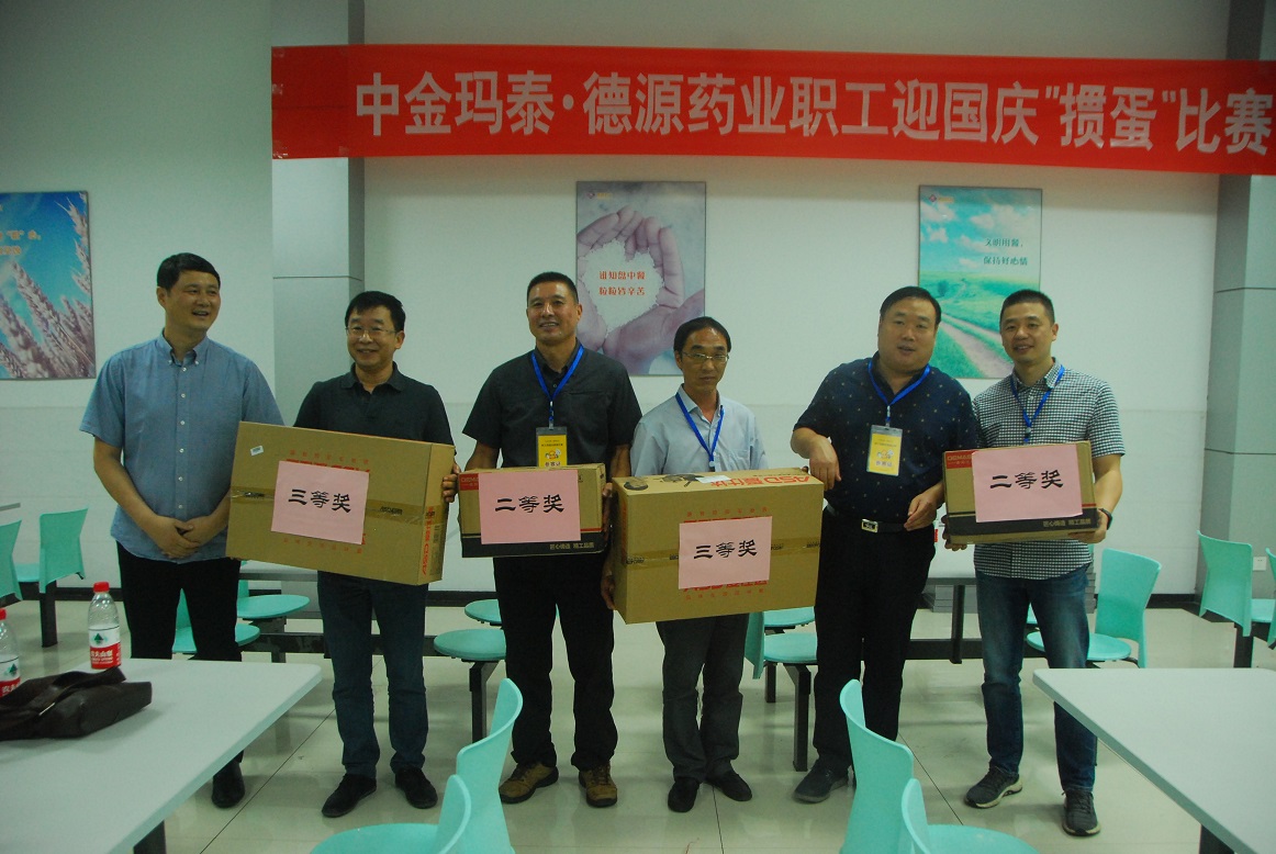 為慶祝中華人民共和國成立69周年,9月29日,中金瑪泰·德源藥業職工迎國慶“摜蛋”比賽在德源藥業舉行。本次活動雙方各選派出8組選手參加了比賽。