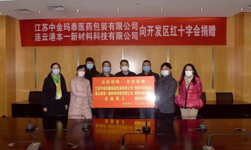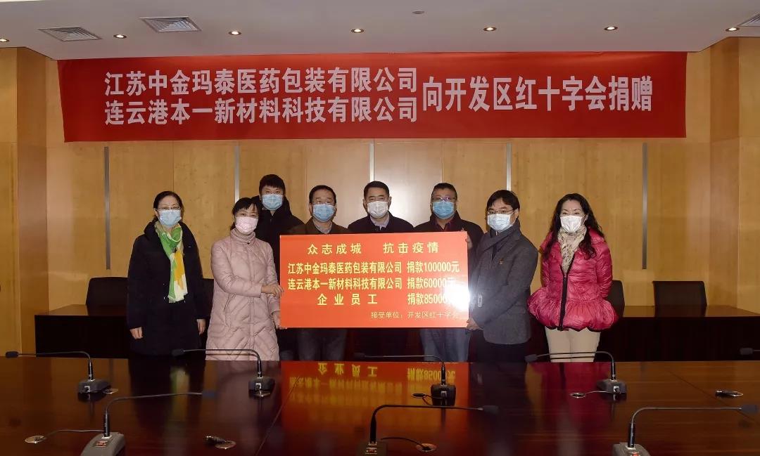 2月14日上午,江蘇中金瑪泰醫(yī)藥包裝有限公司、連云港本一新材料科技有限公司分別向開(kāi)發(fā)區(qū)紅十字會(huì)捐贈(zèng)愛(ài)心款10萬(wàn)元、6萬(wàn)元,企業(yè)職工愛(ài)心捐款共8.5萬(wàn)元,支持開(kāi)發(fā)區(qū)抗擊疫情工作。區(qū)黨工委副書(shū)記、管委會(huì)常務(wù)副主任胡傳宏,區(qū)黨工委委員、黨群工作部部長(zhǎng)、總工會(huì)主席萬(wàn)軍,區(qū)相關(guān)部門(mén)負(fù)責(zé)人,江蘇中金瑪泰醫(yī)藥包裝有限公司總經(jīng)理徐根華、連云港本一新材料科技有限公司負(fù)責(zé)人出席捐贈(zèng)儀式。